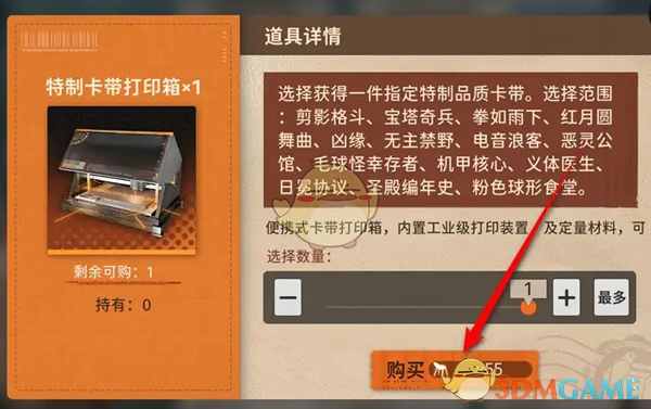 4、消耗货币购买之后,即可获得特制卡带打印箱物品了;