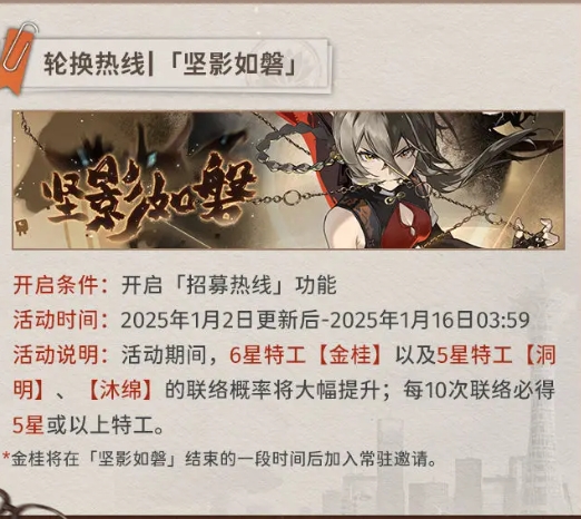 开启条件:开启「招募热线」功能活动时间:2025年1月2日更新后-2025年1月16日03:59