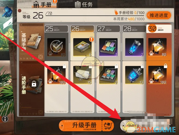 3、最后在手册中,点击下方的等级奖励即可领取奖励了;