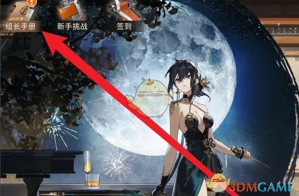 1、在游戏主页,点击左上角的组长手册玩法前往;