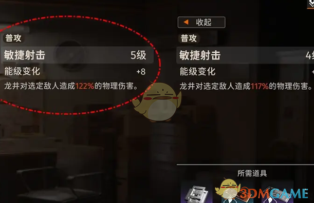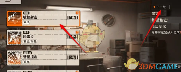 4、在技能升级页面,选择技能后,继续点击下一级即可查看下一个等级的技能;