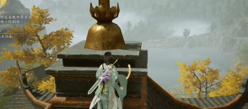 2、先从侧面房顶跳上塔顶,若此时雨停了则只能下次再来;