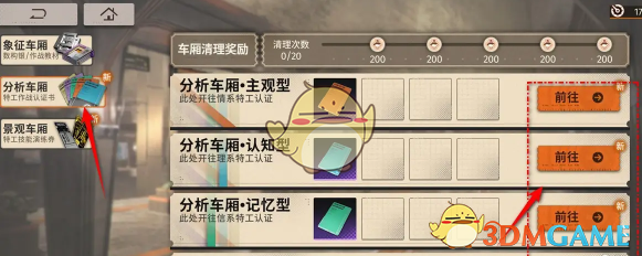 2、在战略行动页面选择分析车厢根据特工类型,再点击前往一节分析车厢。