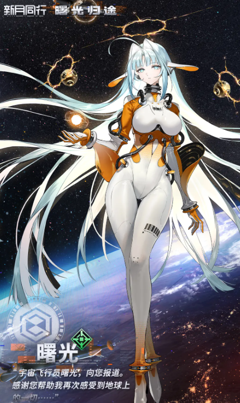 新月同行曙光怎么样?新月同行曙光是一位宇宙飞行员,因其优先的能力在外星异常危机降临时,被选中成为了“曙光号”的驾驶员,同时作为要在曙光归途版本上线的全新角色,相信大家也是对其充满了关注,那么本文就来介绍一下她的技能效果,并简单分析一下强度,对曙光感兴趣的赶紧接着往下看吧。