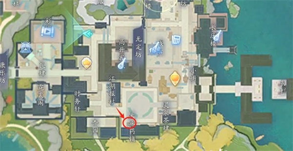 位置:前往无定坊,到太丞药铺门口,和元文宣对话。