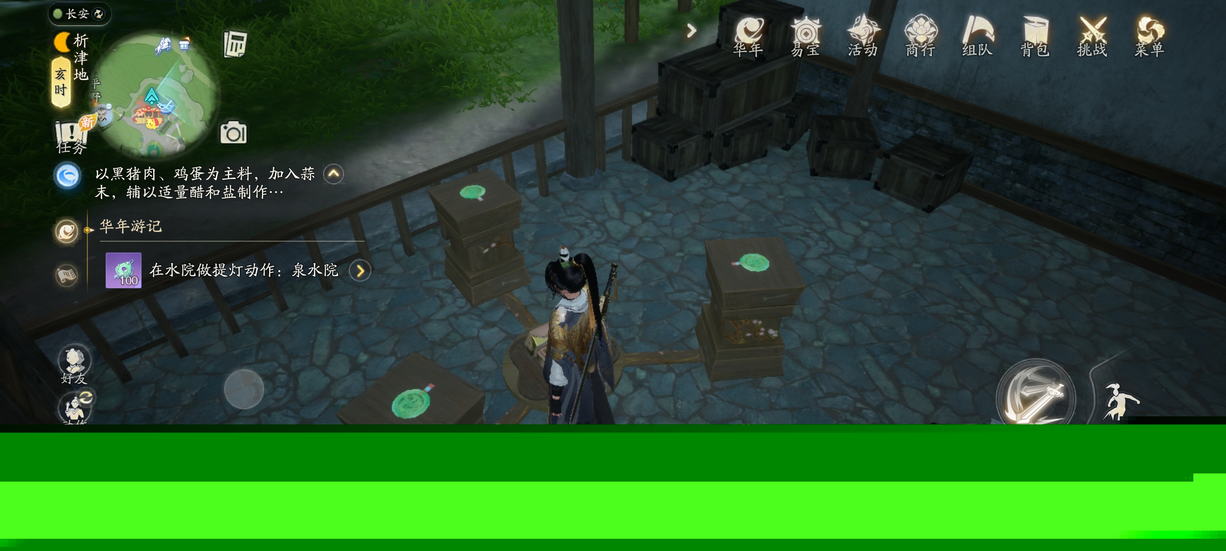 1、三石家猪场每只猪都可以喂食,可得黑猪肉,70经验,(其中三只猪喂食之后可得玉佩)