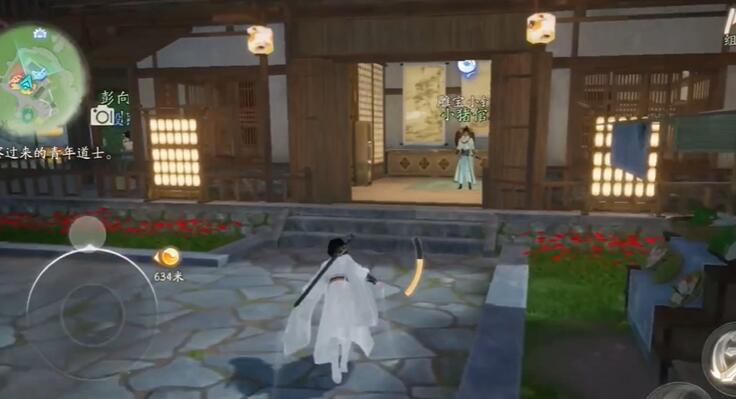 4、找到雕宝,进行对话,然后进入前方的屋内。