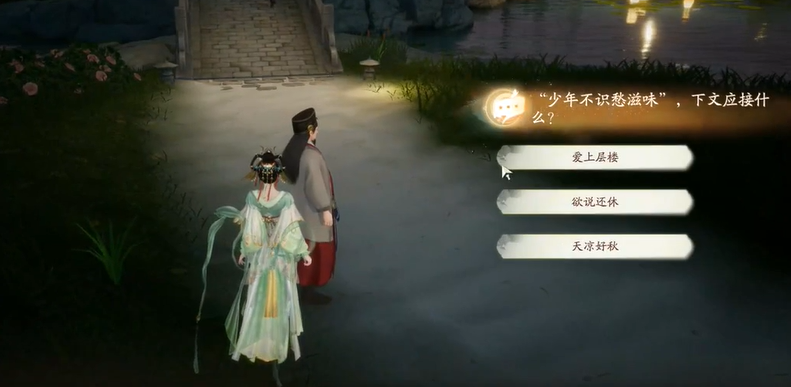 11、与仆从的对话中选择【临安的旖旎春光】,再帮【蒲苇】打水;