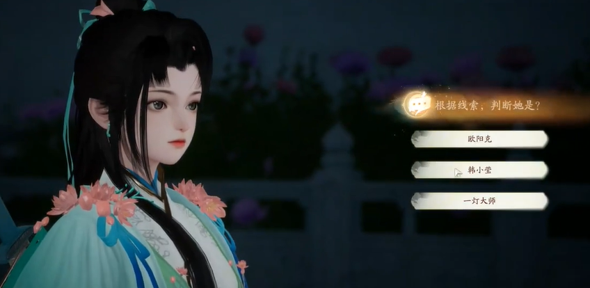 2、去旁边找青衣女子,选择【韩小莹】,在战斗中击败青衣女子;