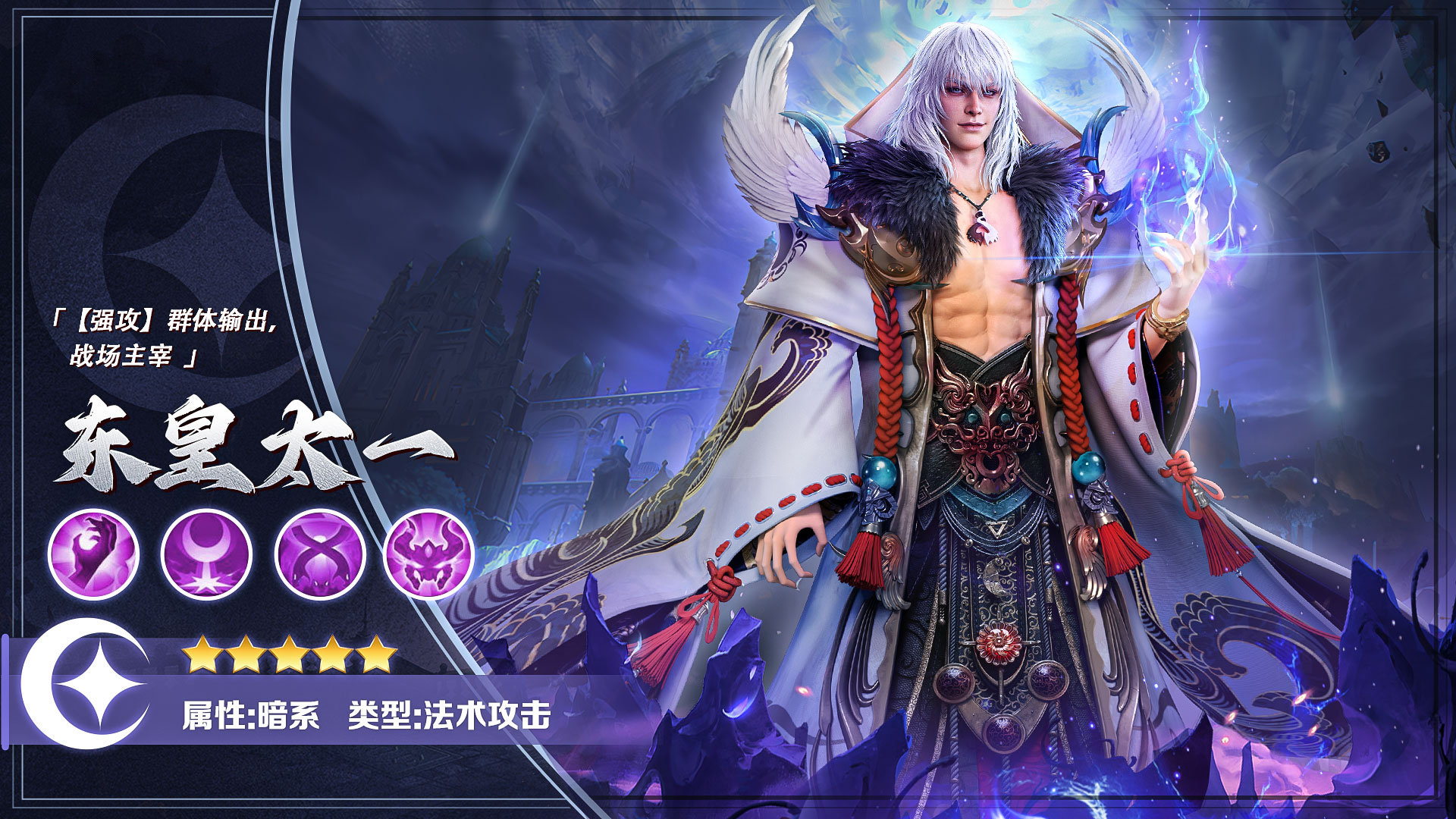 逍遥志一款深受玩家喜爱的经典角色扮演类游戏,游戏中SSR东皇太一是暗系强攻英雄。定位是群体输出,战场主宰。下面是小编给大家带来的《逍遥志》东皇太一英雄介绍,感兴趣的小伙伴们一起来看看吧。