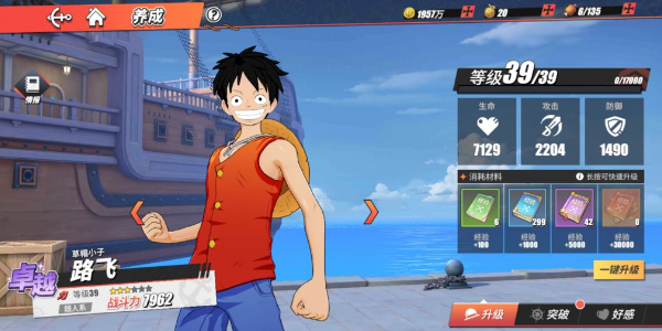 1、路飞的操作和培养难度都相对较小,但是在前期有着不错伤害,推荐新手玩家选择。