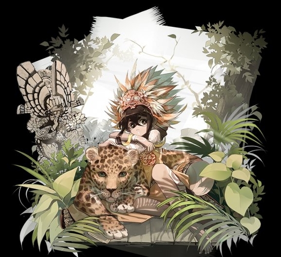 器者外现形象现为皮肤黝黑的玛雅少女,头戴羽饰,身纹复杂图腾,熟悉古老而神秘的文化,对现代文明的一切都非常陌生好奇,持长枪,反应灵活,有美洲豹一般的机敏和矫健。随身携带巨大巧克力碗,视可可豆为生命,会习惯性地用可可豆与人交易。