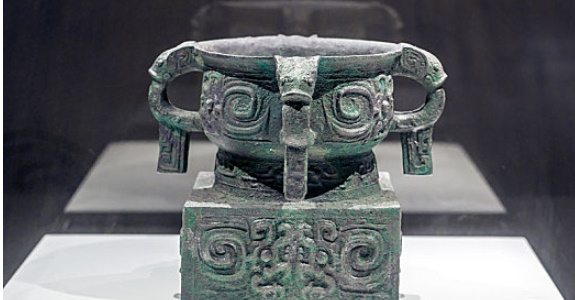天亡簋是西周早期青铜器,别称“大丰簋“、“朕簋” 。圆体方座,有四个兽耳,装饰卷体兽纹,呈现出一种古朴端方的感觉。器内底有铭文8行78字,行文韵律优美流畅,记述周武王灭商的祭礼并颂扬了文武二位帝王的功德。这件器物是研究西周制度和祭祀制度的重要资料,具有重要的历史意义和文化价值。现藏于中国国家博物馆。