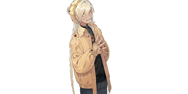 外现形象为一名英气活泼的少年。本体来自云南显赫的沐氏家族,由金片制成,满嵌宝石,光芒四射,器者本人也自带一股天生的王侯贵气。器者遵守着将军世家的规矩条律,在正式场合可以讲得一口文络络的官家话,但在私下里性格活泼开朗,是个热血侠义之人。器者最近对兵书起了兴趣,执行任何任务前都会慷慨陈词,给人以热血沸腾之感。