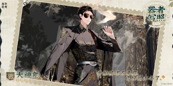 器者外现为干练的青年形象。本体神龛是家族溯源的重要象征,因此该器者非常重视宗族家庭。也许是习惯香火气、也许是为了随时都能祭拜祠堂,总之他会随身携带线香。虽然有时思维有点守旧,不过并不固执己见,善于接受新鲜事物,尤其能关注到新事物的商业价值;因其豪迈的性格,也很受器者们的信赖和喜爱。