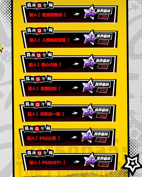 1、兑换码:怪盗团集结: 异界晶珀*100