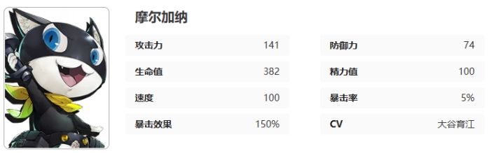 《女神异闻录:夜幕魅影》摩尔加纳怎么样?摩尔加纳是女神异闻录中的5星角色,形似黑猫的谜之生物,初始人格面具是「佐罗」,那么摩尔加纳在夜幕魅影中有着什么样的技能,意识又有哪些加成呢?接下来就让我们一起了解一下吧。