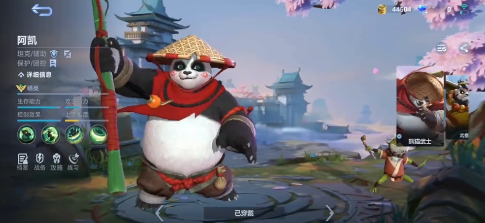 最后的熊猫战士阿凯主要是可以保护团控,阿凯在前期的节奏非常好,他的肉度较高,因此他在后期主要负责保护队友,虽然他自身的攻击力并不强,但他的控制效果和生存能力都非常出色,他的被动技能名为太极,这是一个增益技能,每次释放完这个技能后,他可以给自己增加25点的伤害护盾,这个护盾是根据角色总体力值加上4%来计算的,因此在战斗中具有很高的实用性,只要被标记的目标,他的普通攻击就会对其再造成25点物理伤害,所以他在战斗中能够对敌人造成持续的伤害,同时也能有效地控制敌人的行动。