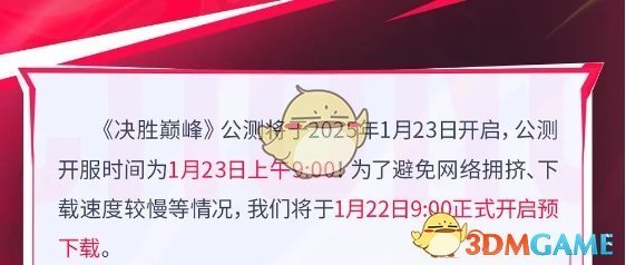 决胜巅峰作为一款全球热门的MOBA类竞技游戏,在玩家们的期待下终于定档1月23日,目前游戏已经开启预下载通道了,大家可以前往各大平台提前下载游戏并体验,后续也能更快的进入游戏,那么游戏的预下载时间什么时候开始呢?下面就让小编给大家带来《决胜巅峰》预下载开始时间,一起往下看看吧。