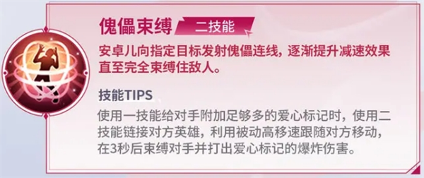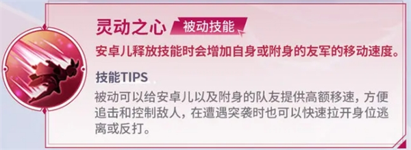 安卓儿有着很强的辅助能力,对敌方的奇袭类英雄有着克制作用,可以保护使其无法第一时间击败已方关键输出。
