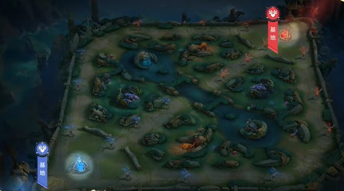 决胜巅峰地图采用经典的对称结构,分为上、中、下三条分路。每条分路的两侧都设有防御塔,保护玩家的基地。中路是最短的分路,适合法师快速清兵并支援其他两条分路。上路和下路则分别被称为经验路和金币路,这两条分路的前10波兵会提供不同的增益效果。金币路的前10波弩车兵会提供额外35%的金币,适合射手和需要快速装备发育的英雄;而经验路的前10波兵则提供额外35%的经验,适合依赖等级优势的战士或坦克英雄。此外,地图中间设有河道,河道两侧各有两片野区,共四片。