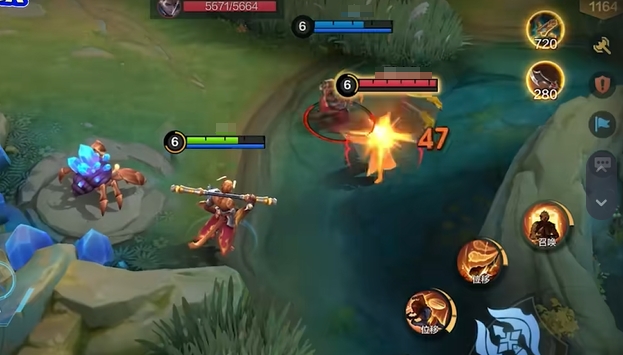 崆的第二技能移花接木则展示了其极高的机动性和迷惑能力,崆在原地留下一个可以攻击敌人的分身后,自身会短暂隐身并随金箍棒向指定方向飞出,对沿途的敌人造成伤害。可以用来快速接近敌人,还能在危机时刻迅速脱离战场,分身的存在则可以让敌人误判崆的位置,从而达到迷惑敌人的效果。