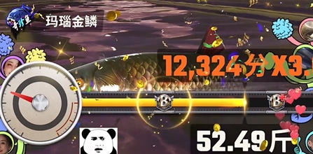 3、收线的时间可能会久一点,等鱼没力气后即可成功获得玛瑙金鳞。