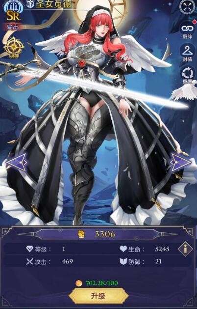 4、首先我们长按升级按钮,等级提升后可以增强角色的攻击、生命以及防御等属性