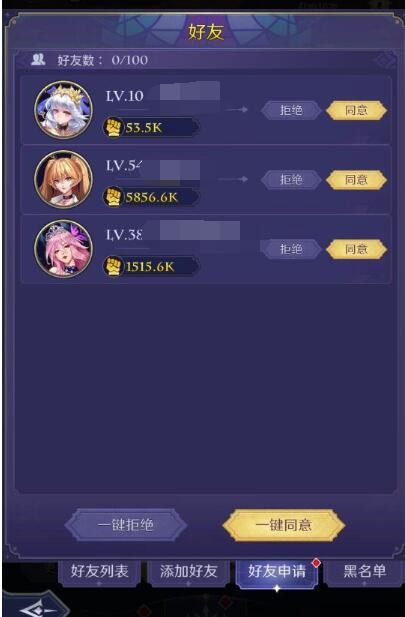 3、在这里可以处理好友请求信息,玩家可以直接同意或者拒绝对方的请求信息