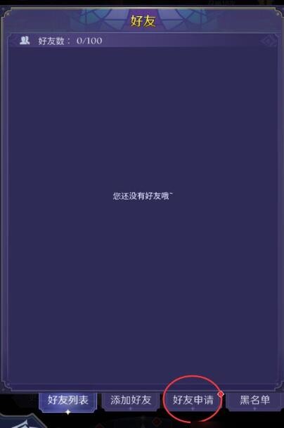 2、进入到好友系统后,我们首先点击下方的申请菜单