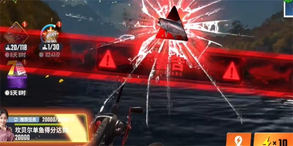 4、最后在这期间就需要不断的积攒暴击,即可成功的把鱼收入囊中。