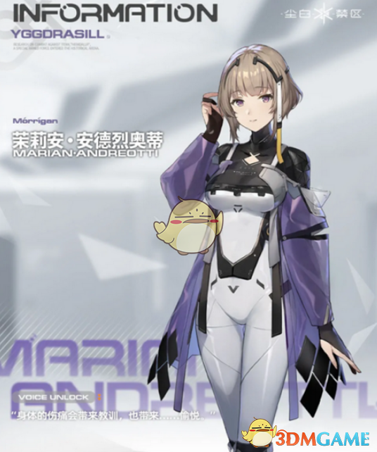 最早出现在剧情角色人物之一,也是游戏中为数不多的白色头发的女性角色,当然她的输出能力也十分可观,比较的中规中矩。