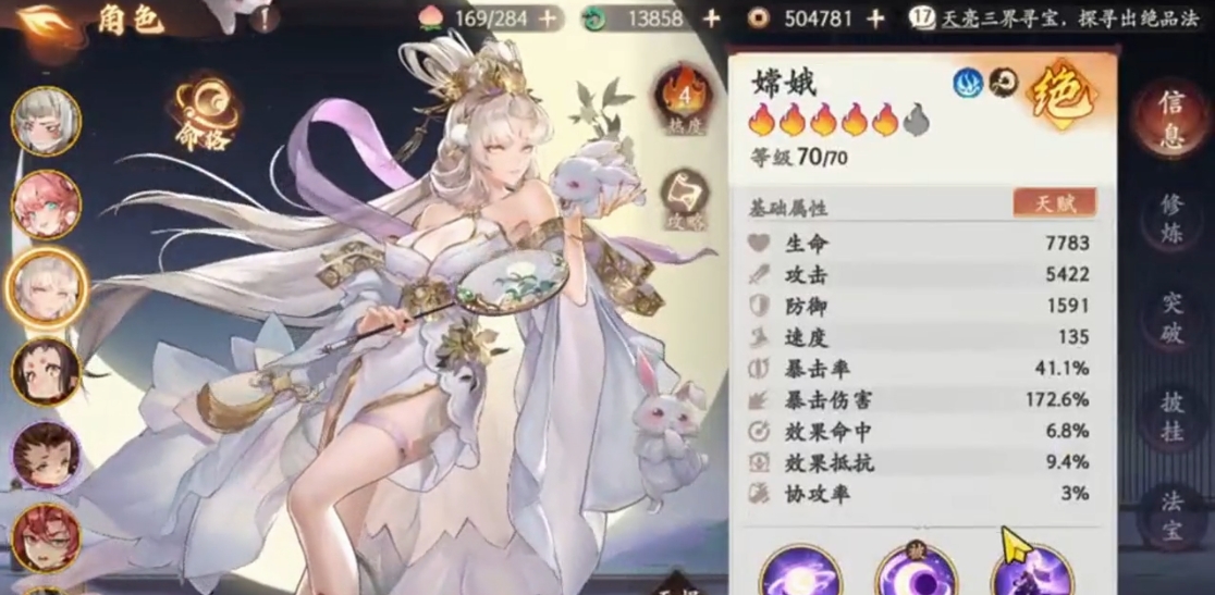 3、下一个就是法师,一个输出职业,就选我们的嫦娥,嫦娥在登录第二天直接领取,然后法宝的话也可以登录五天白嫖免费,可以桂魄流萤扇。
