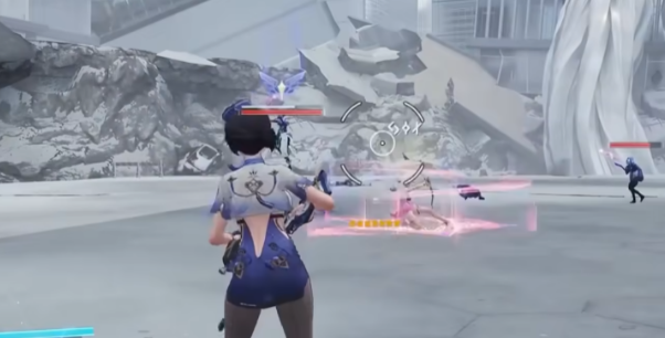 薇蒂雅·天鹅座使用的是一把5发弹容栓狙击枪,作为后台支援角色,她的主要任务是通过技能链接敌人,并对其造成影响。她的支援技与溯影的支援技类似,能够对目标进行链接,产生持续的支援效果。在技能启动后,她会进入驻场状态,这意味着在技能释放期间,玩家无法使用她的大招或进行其他操作,画面会切换到持续释放支援技的第一视角,并且此时无法开火。