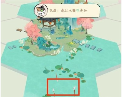 2、春江水暖鸭先知:只需要将水里有鸭子的地块移动到小岛的下方即可。