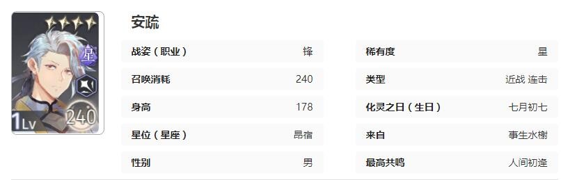 咏月风雅是一款二次元国风卡牌养成游戏,游戏中有各种祝者角色,其中祝者安疏怎么样呢?这是一个近战角色,初始暴击率较高,普攻是较长前摇后,然后打出4缘赋生死予夺连击。接下来小编给大家带来了《咏月风雅》安疏技能属性图鉴,想要了解角色详情的速来!