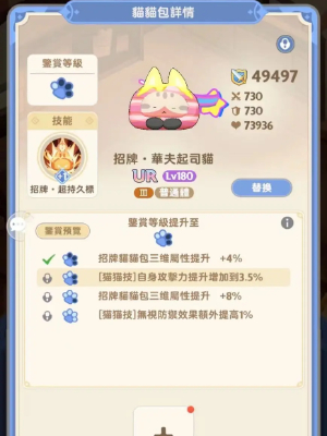 1、UR猫猫包可通过吃同名猫猫包提升效果,类似宠物升星。鉴赏等级不可回退,但可通过反喂获得鉴赏等级。