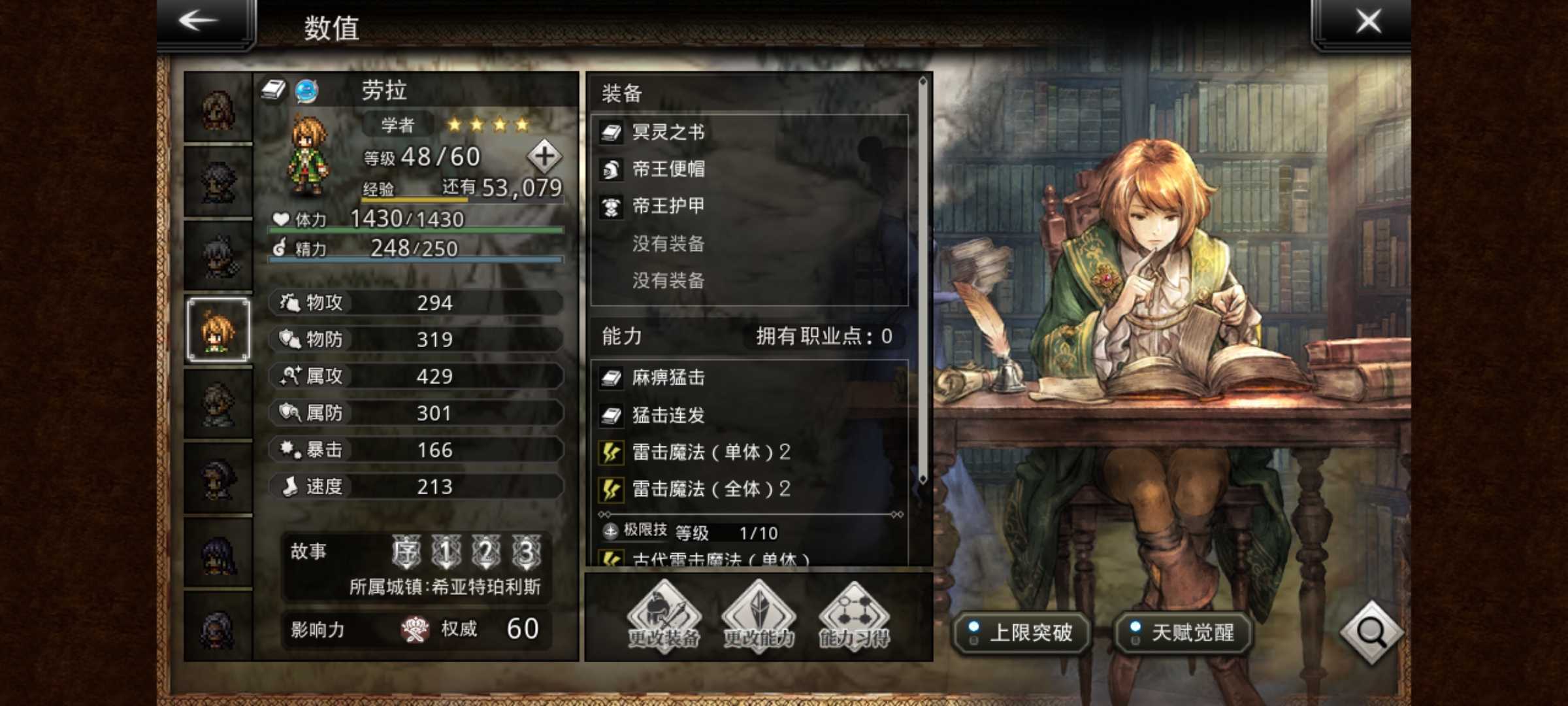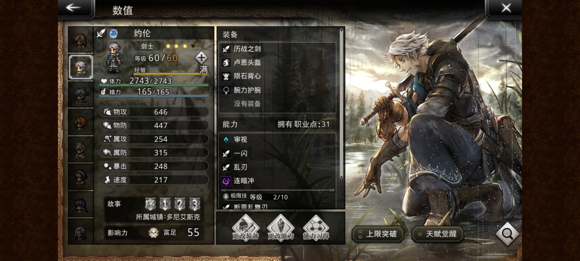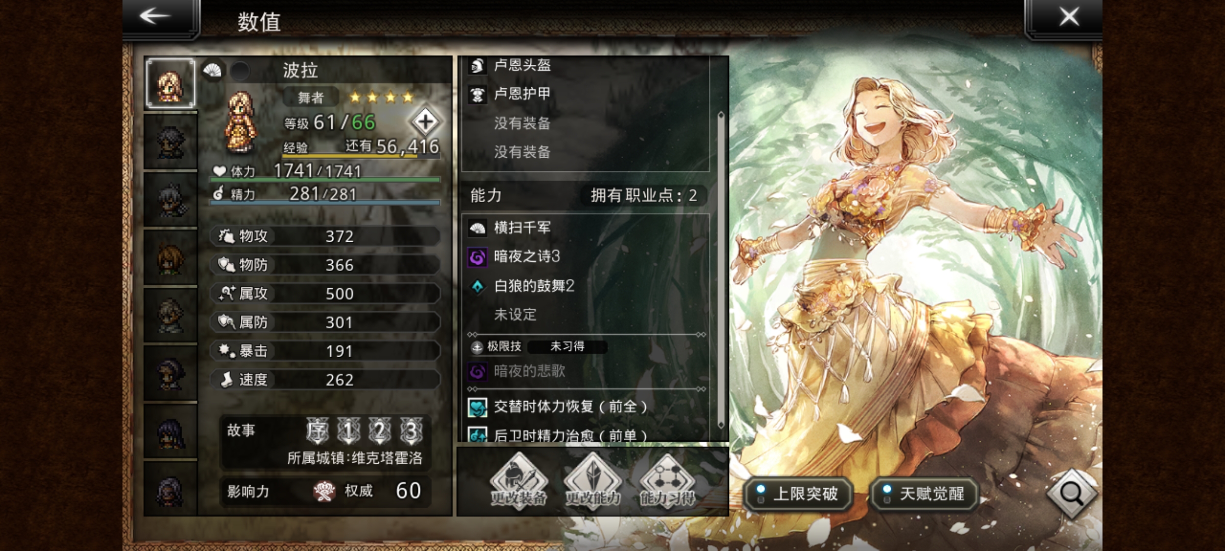 洛洛:前卫+10物攻,弓4,光2,杖1,多维破盾手
