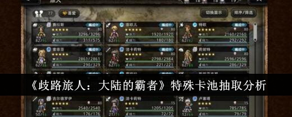 以上就是小编整理带来的歧路旅人大陆的霸者特殊卡池抽取分析,更多相关游戏攻略,请关注手游网!