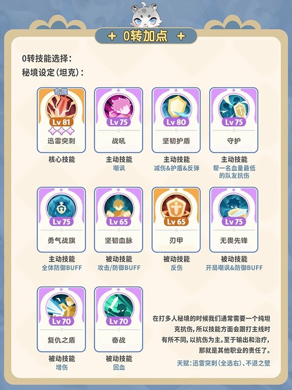 剑士加点与宠物推荐玩法攻略,这款游戏中的剑士算是对零氪玩家较为友好的一个职业,作为一个坦克职业,即使在资源不多的情况下也能在秘境起到应有的作用。所以根据这个职业为大家带来了他的技能加点和宠物选择解析一图流攻略大全,感兴趣的玩家赶快来看看吧。