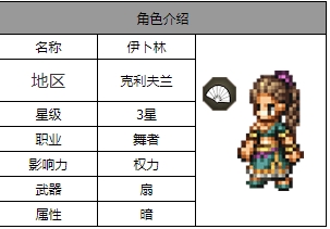 以上就是小编整理带来的《歧路旅人:大陆的霸者》伊卜林角色介绍,更多相关游戏攻略,请关注手游网!