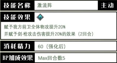 二合一被动让他提供buff和debuff时都能延长1回合,极度契合他本人的强辅助能力。在当前版本他的单段必暴剑和总倍率520的4段剑让他甚至连输出也不输别人。总之是剑枪两种打击面的核心成员,被誉为人权卡而名声在外。