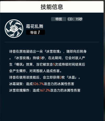 手法:伍尔芙使用特技【灵典护体,CD:10s】生成护盾并消耗敌方防御,然后切换赤蝶释放特技和奥义等招式,产生暴击后可以提高队伍的暴击伤害属性,并且奥义的烈焰蝴蝶可以在赤蝶下场后持续为敌人附加火元素印记;然后古河诗音上场使用特技【霜花乱舞,CD:15s】引怪,然后利用获取的冰晶释放出派生攻击,对火元素印记的敌人造成大量伤害。
