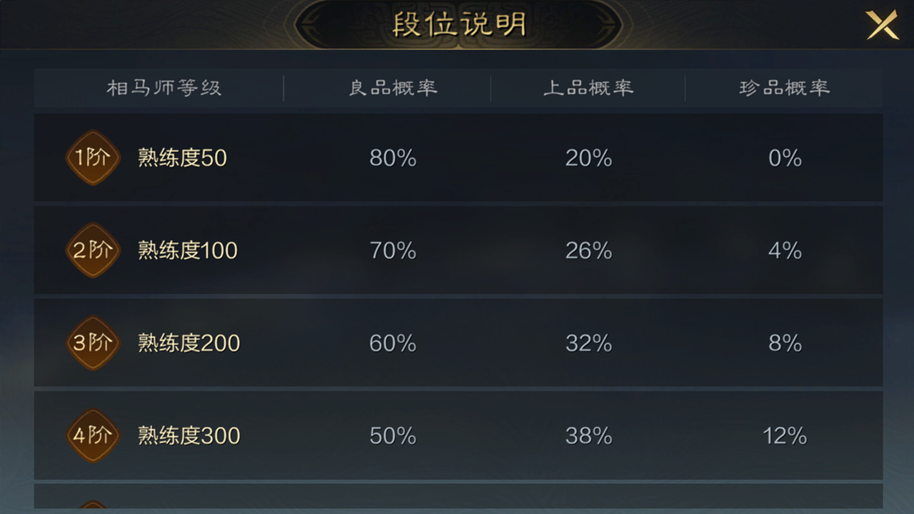 2.高级马匹的获取概率随着相马师等级的提升而提高。