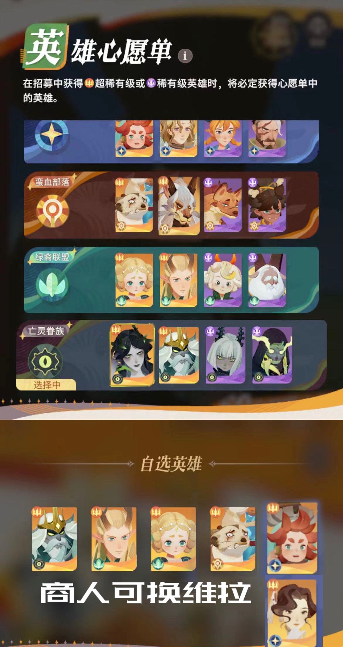 6、自选心愿单:奶爸、绿箭、骨王、荷叶(维拉或商人)