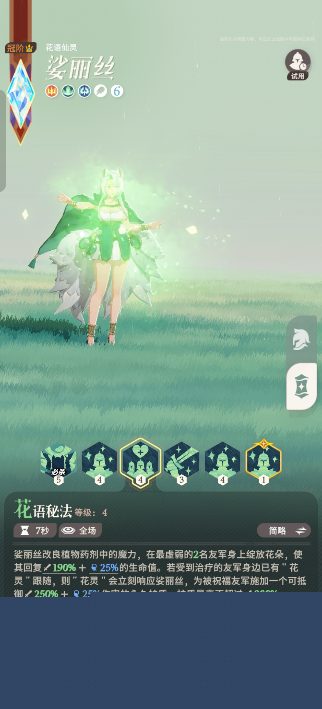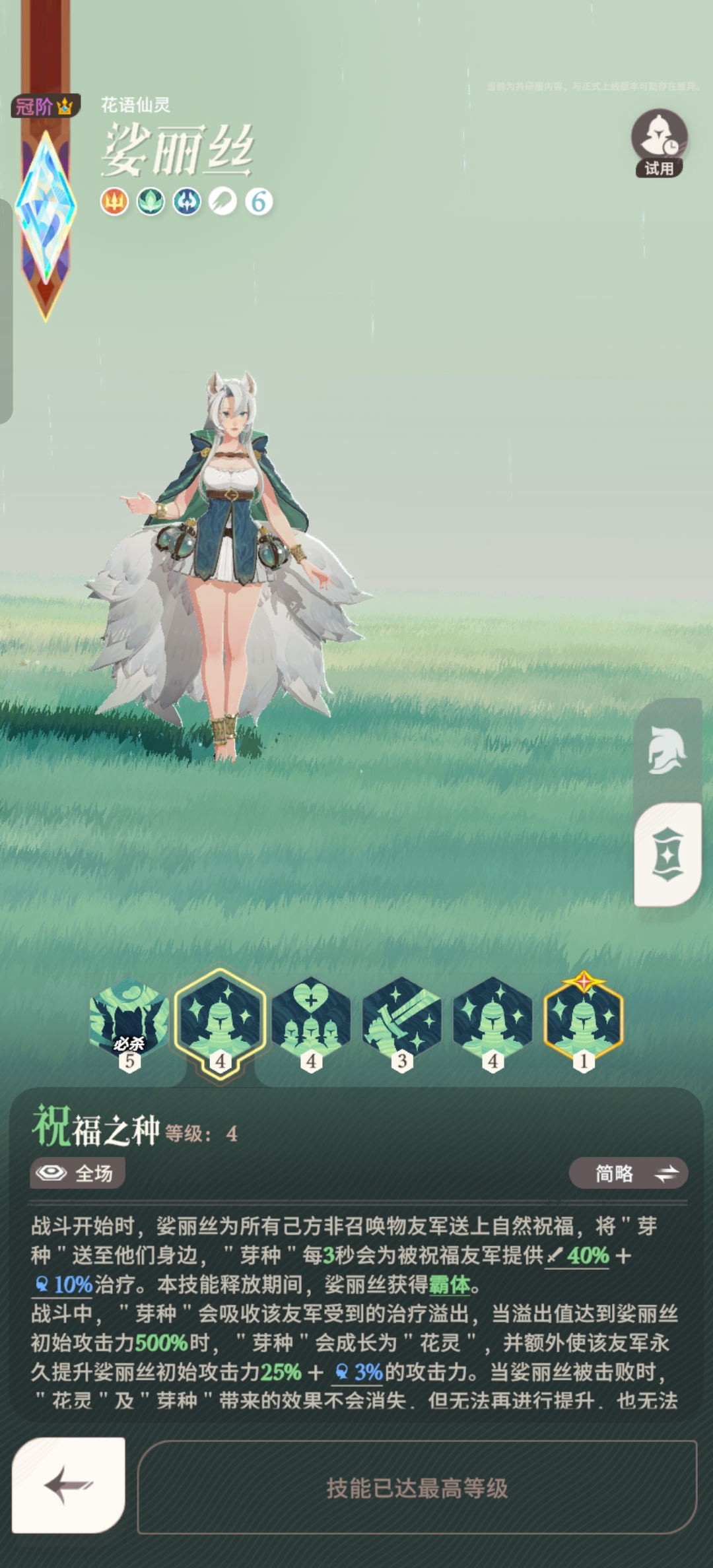 剑与远征启程娑丽丝有什么技能,施加的治疗效果提高30%,每当对友军造成治疗溢出效果时,使其提高10点急速和10%攻击力,持续8秒,不可叠加。对该友军造成的治疗溢出效果累计超过自身初始攻击。