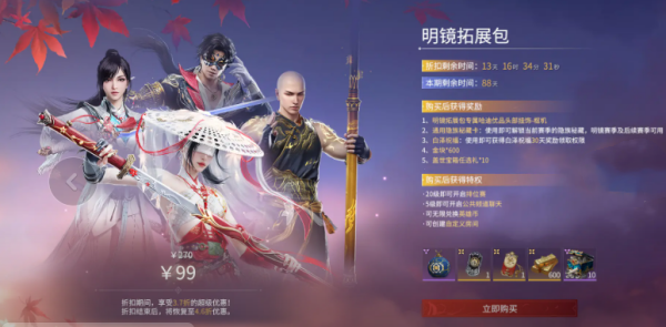 永劫无间明镜拓展包怎么样?永劫无间明镜拓展包是在1月4日上架在商场的当中的一个礼包,玩家花费99元就可以购买这个礼包,其中能够获得非常丰厚的礼品奖励,具体这些奖励都有哪些,下面小编为大家带来永劫无间明镜拓展包介绍。