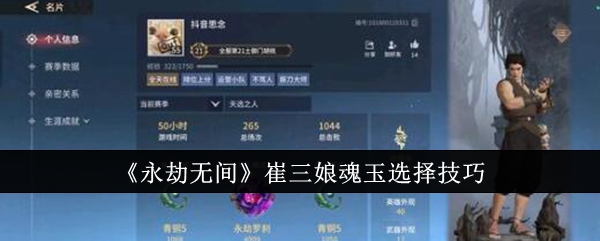 永劫无间崔三娘魂玉怎么选?永劫无间手游里面很多人都想要培养下这个崔三娘了呢,那么搭配适合的魂玉那么就会更加的简单了,今天就给大家推荐下两种方案了,可以选择适合自己的方案去玩了呢,那么大家要是不会的来看看吧!