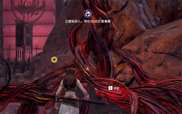 3、在王屋中间位置能够看见红色藤蔓上前进行交互。