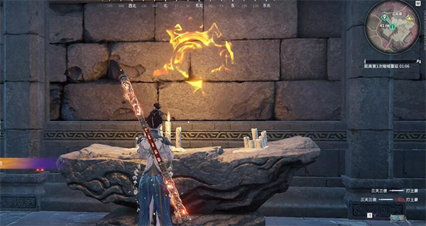 2、在古司寨用远程攻击打树,砸倒墙壁后会出现一个密室的入口。